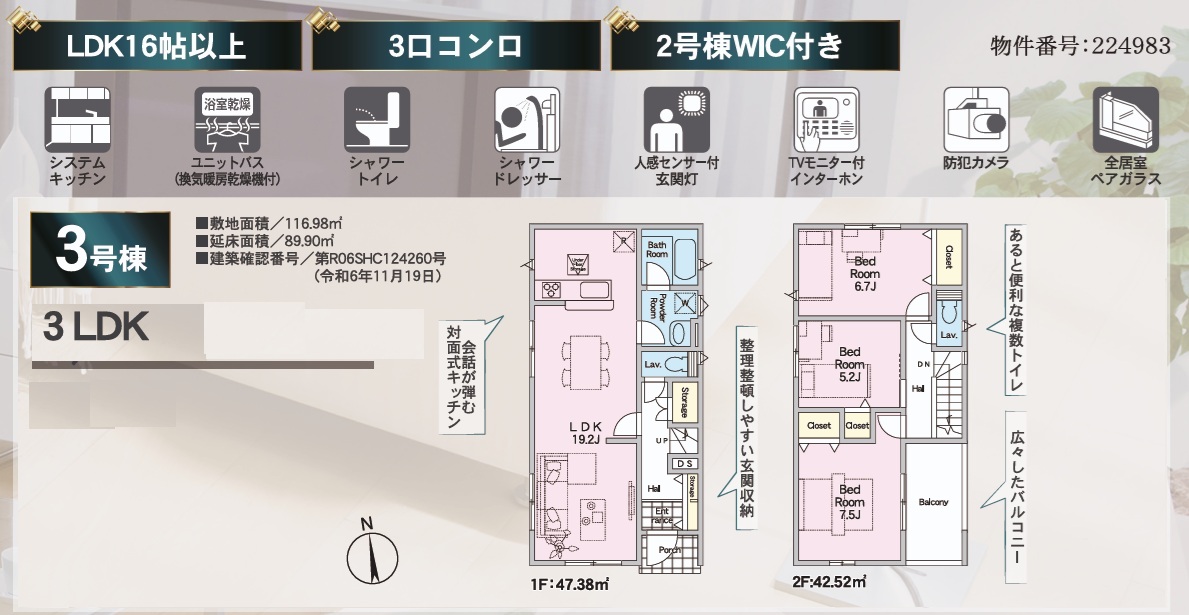 | コメント | ご成約キャンペーン実施中【 八戸市南類家 第3期ー3号棟 全3棟現場 】【 新築建売専門店URUハウジング 】 LDK用エアコン付き | ||||