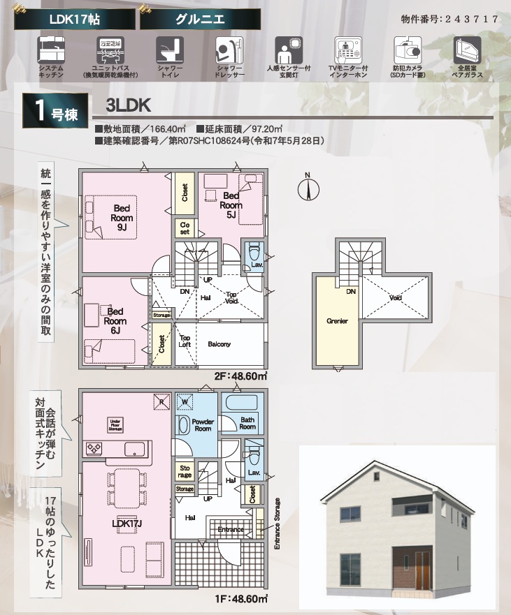 | 建物構造 | MOISSTM耐力面材工法2階建て | 建物面積 | 97.20㎡ |