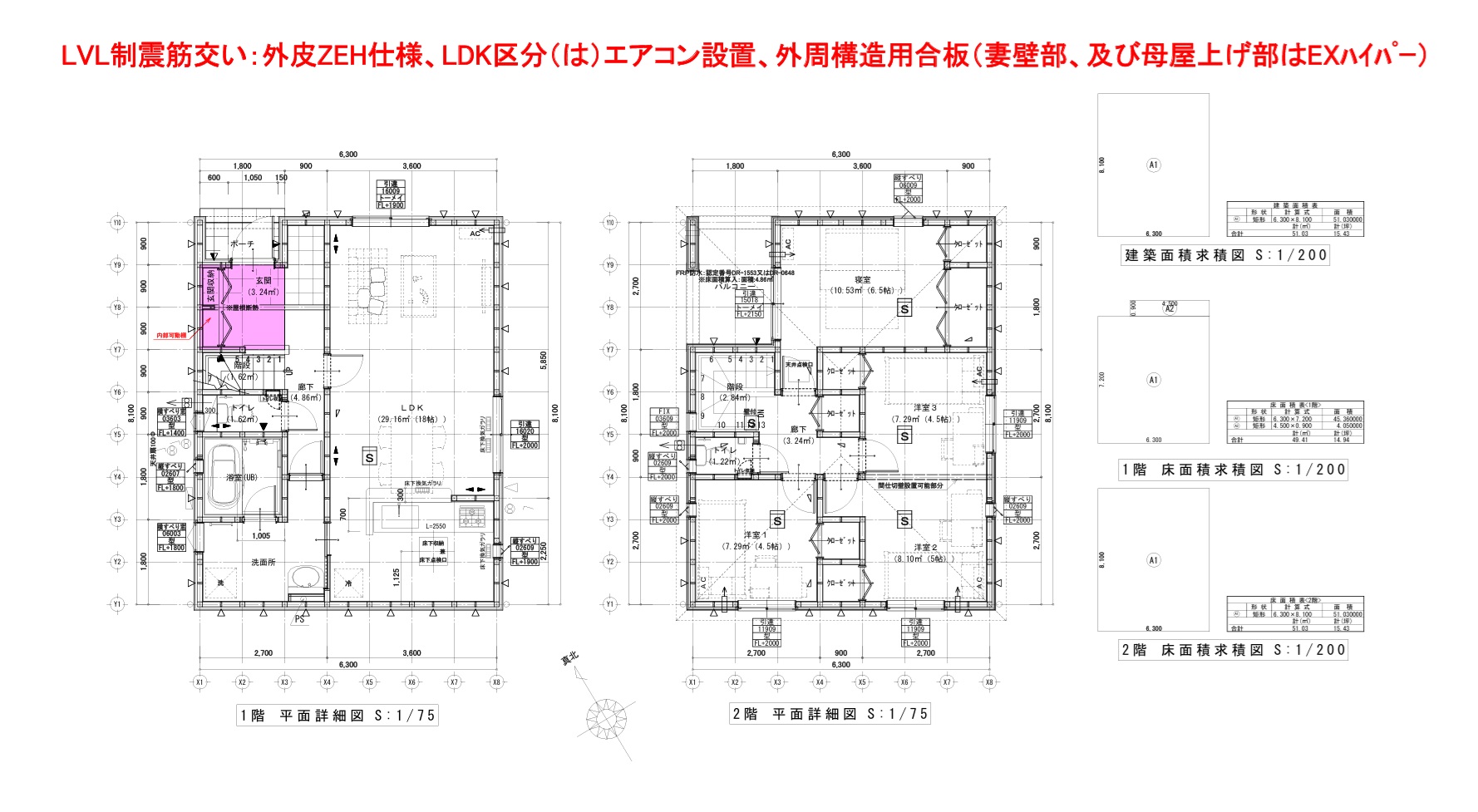 | 建物構造 | MOISSTM耐力面材工法2階建て | 建物面積 | 100.44㎡ |
